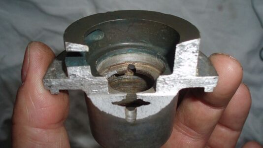 Ich habe kürzlich über Ebay einen gebrauchten 350 cc Dakota Zylinder mit Kolben erworben. Nicht dass ich die Teile brauchen würde, nein, das eigentlich Interessante ist die verbaute Wasserpumpe und das Thermostatgehäuse. Ich hoffte herauszufinden, welche Unterschiede es zu den anderen BI4 Modellen gibt. Erst auf den zweiten Blick sind mir bei der Pumpe, vermutlich die allererste Serie, die Unterschiede zu einer 500 cc Pumpe aufgefallen. Neben einem anderen Gehäuse ist die Einbautiefe 1 mm geringer und der Unterschied im Flügelradspaltmaß 1,50 mm.