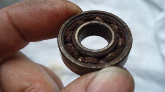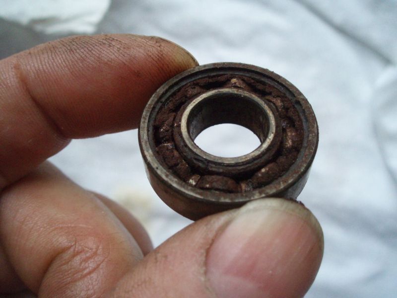 Die beiden Kugellager sitzen recht stramm im Gehäuse. Ein vorheriges Erwärmen, statt kalt auszupressen, wäre die elegantere Variante: