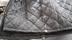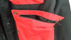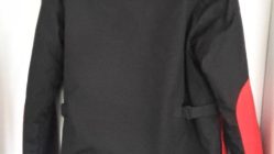 Biete eine gebrauchte, aber sehr gut erhaltene Gilera Jacke in Schwarz/Rot in der Größe XXL aus dem Material Nylon. Das Innenfutter ist herausnehmbar (Reißverschluss). Die Jacke hat zwei große Taschen mittels Reißverschluss und zwei zusätzlichen Druckknöpfen zu schließen, eine kleinere Brusttasche nur mit Druckknöpfen und eine Innentasche mit Reißverschluss. Der hohe Kragen lässt sich in der Weite nicht separat einstellen. Die Taillen lässt sich mit zwei Klettbändern rechts/links einstellen. Die Unterarme sind zusätzlich gepolstert.