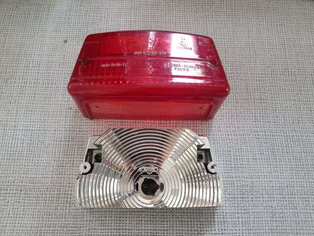 Repariertes, originales (deutsches) Rücklicht mit Klarglas. Die abgebrochenen Befestigungsnasen wurden erneuert, verschraubt und zusätzlich verklebt.