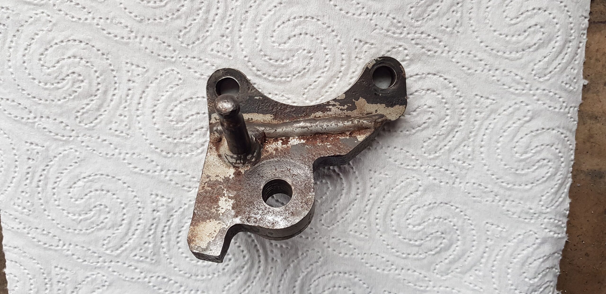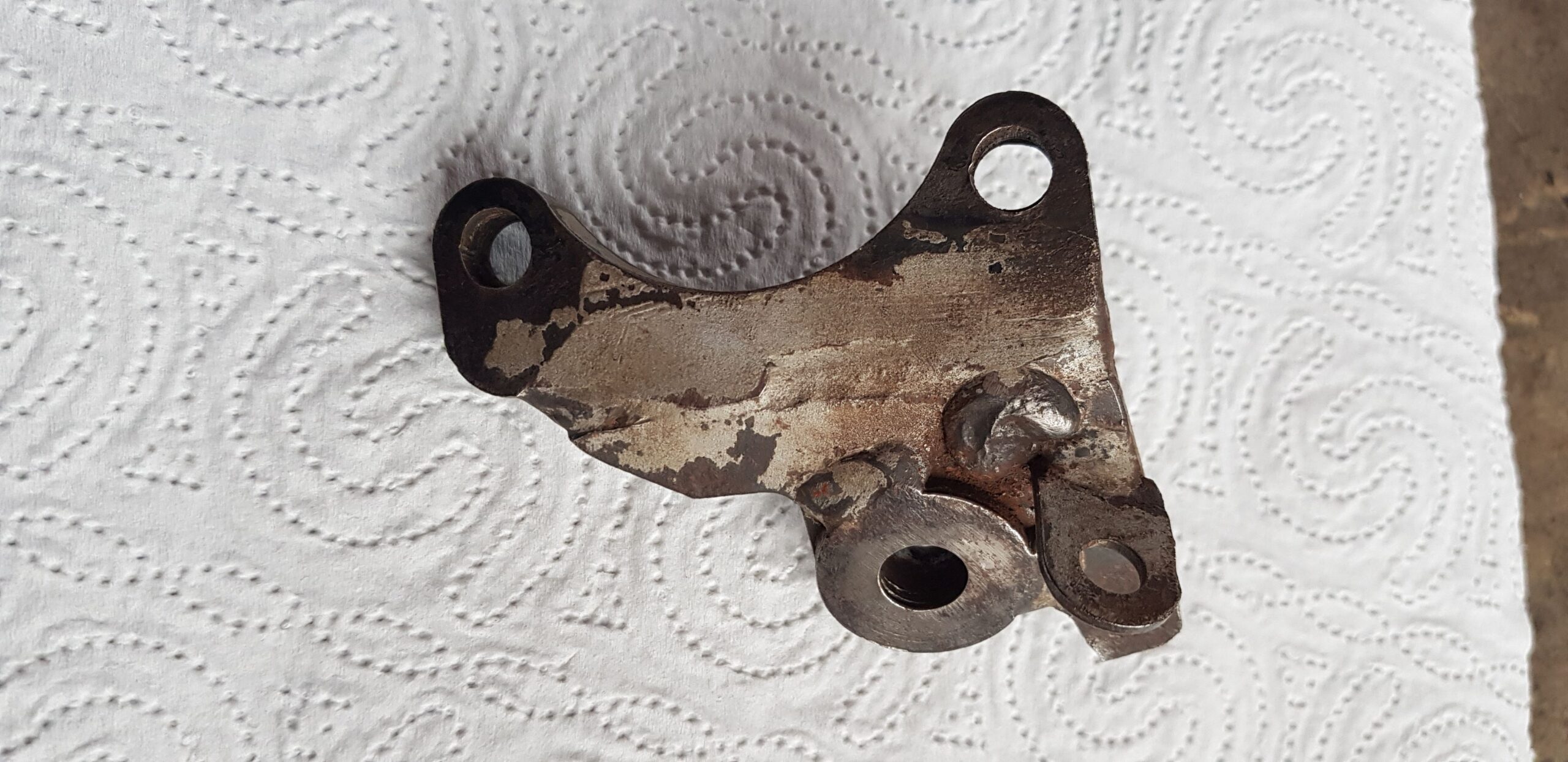 Nie mehr abbrechen! Halter mit aufwändiger Reparaturschweißung ertüchtigt. Schraubenbefestigung jetzt als Vollmaterialausführung.