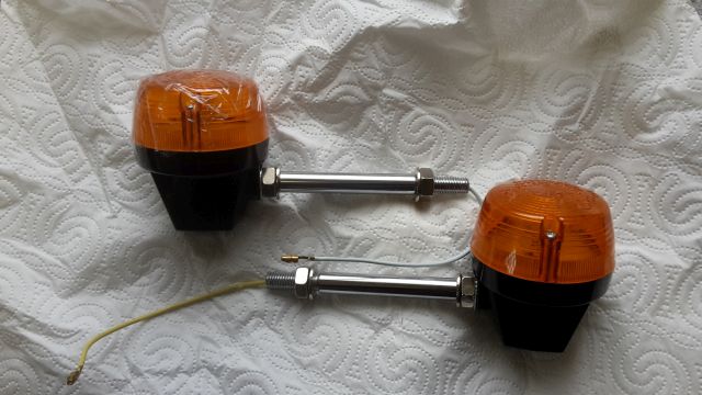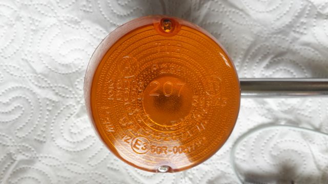 Einen Satz neuer Blinker mit Ärmchen. Sind zwar mit 207 gekennzeichnet, aber ohne CEV Zeichen, vermutlich Nachbau. Wurden u. a. an den Moto Guzzi LM1 verbaut. Preis/Satz
