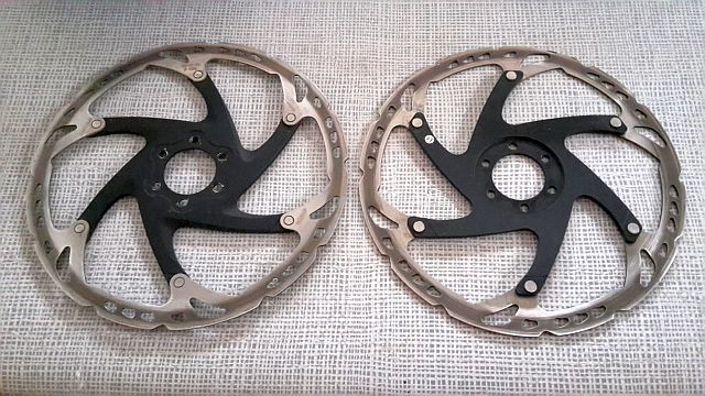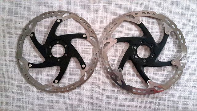 Vier gebrauchte Shimano Bremsscheiben 203 mm, Dicke 1,7, 1,8 bzw. 1,9 mm.